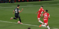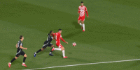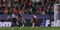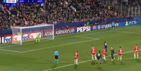 第8分钟,特罗萨德门前撞射,皮球稍稍偏出
