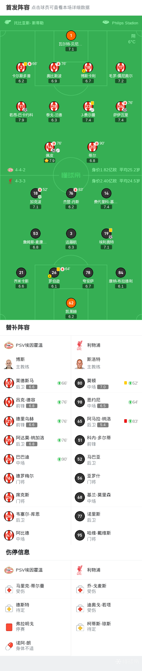 第75分钟,埃因霍温连换三人,吕克-德容、德里乌赫、纳加洛替补登场