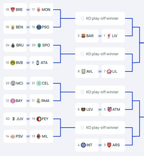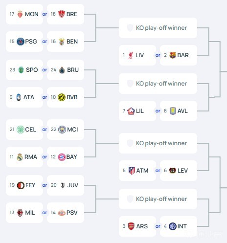 北京时间1月30日凌晨,2024/25赛季欧冠结束了联赛阶段的全部比赛,最终的晋级形势全部得到确认。