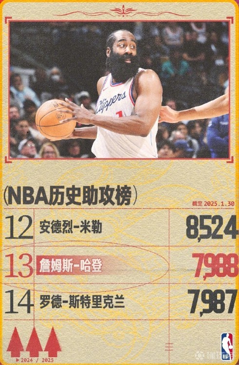 生涯助攻数升至NBA历史第13,哈登15中7砍21分3板12助3断1帽十月孤城chasing @懂球帝2025-01-30 11:26北京时间1月30日,在NBA常规赛中,快船客场128-116力克马刺。此役哈登再度达成个人里程碑,他全场出战36分47秒,15投7中,三分5中3,罚球7中4砍下21分3篮板12助攻3抢断1封盖。本场过后,哈登的生涯助攻数正式升至NBA历史第13位,下一位将追逐安德烈-米勒。展开更多