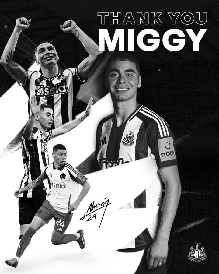 纽卡官方发文:在俱乐部效力六年后,我们确认米格尔-阿尔米隆已永久转会加盟亚特兰大联队。谢谢你给我们留下了如此特别的回忆,Miggy。祝你未来一切顺利!
