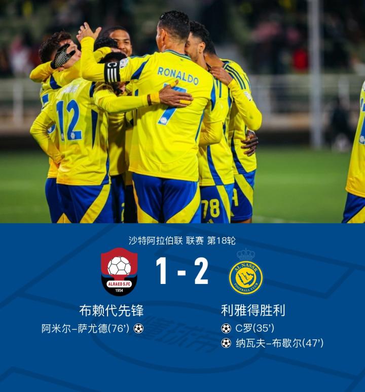 利雅得胜利2-1客胜布赖代先锋,C罗传射建功,布歇尔破门