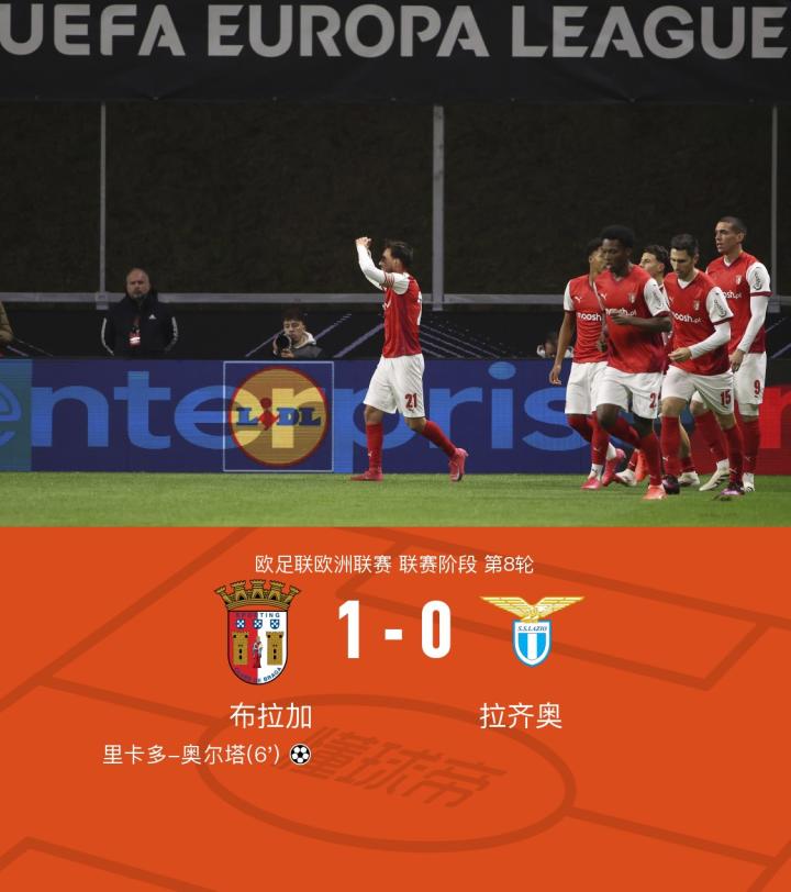 拉齐奥0-1布拉加仍以第一晋级16强,奥尔塔破门+丢单刀