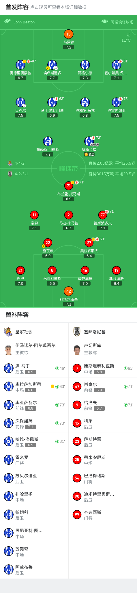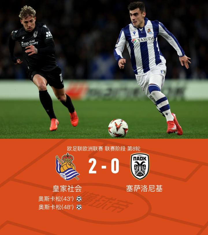 皇家社会2-0塞萨洛尼基,奥斯卡松双响
