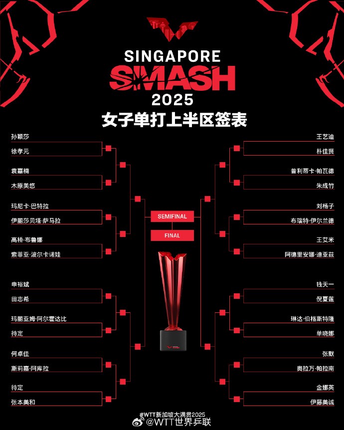 1月31日,WTT新加坡大满贯抽签仪式结束,32岁的韩国选手田志希首轮就对阵自己的双打搭档申裕斌。本届赛事是田志希的国际赛场谢幕之战。