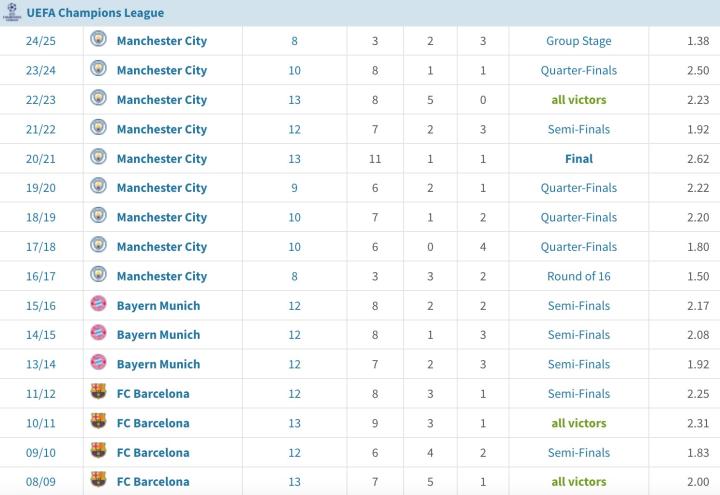 这是曼城主帅瓜迪奥拉执教生涯的第16个欧冠赛季。此前15个赛季,瓜帅带队14次晋级欧冠八强,仅在16-17赛季欧冠1/8决赛被摩纳哥淘汰。瓜帅带队4次止步欧冠1/4决赛,6次止步半决赛,4次进入决赛赢得3次欧冠冠军。