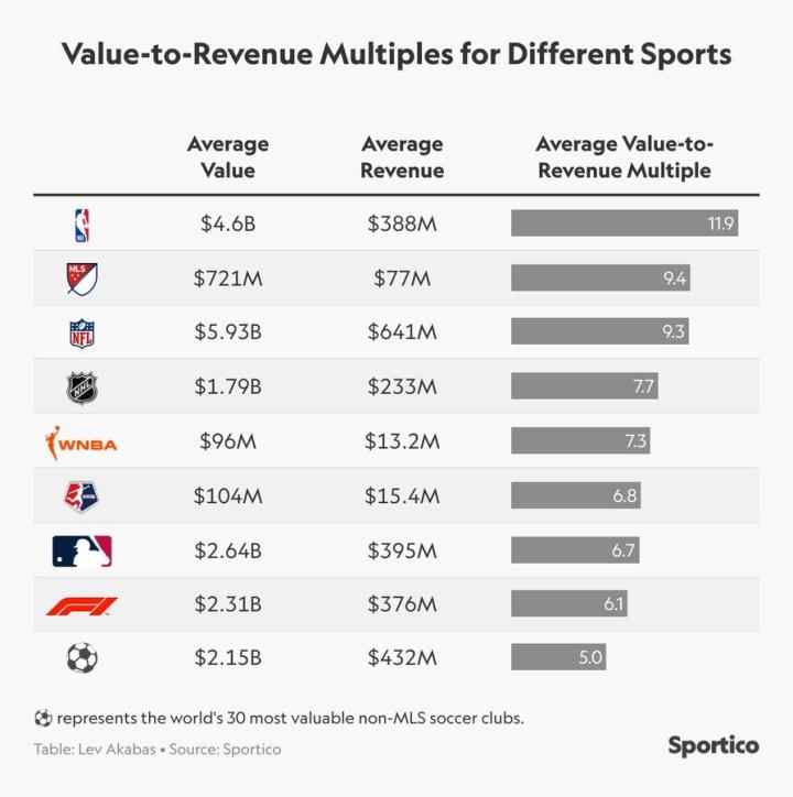 该记者进一步表示,美职联的收入倍数为9.4,是体育行业第二高。