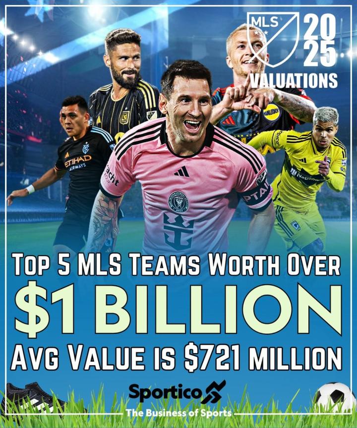 美媒:美职联平均球队估值7.21亿美元;5支球队估值超10亿