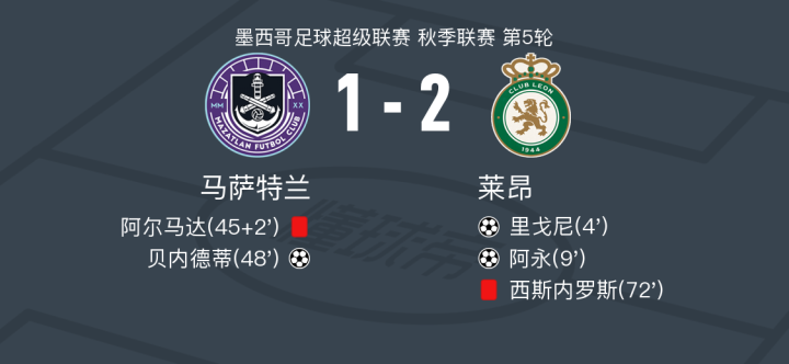 莱昂2-1马萨特兰取墨超4连胜,阿永、里戈尼破门