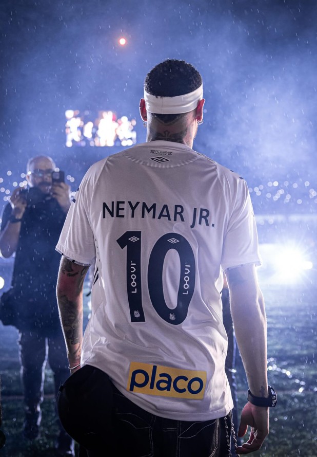 内马尔社媒晒照重回桑托斯,身着贝利曾穿过的10号球衣