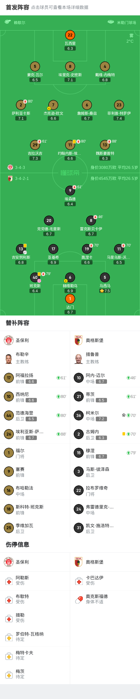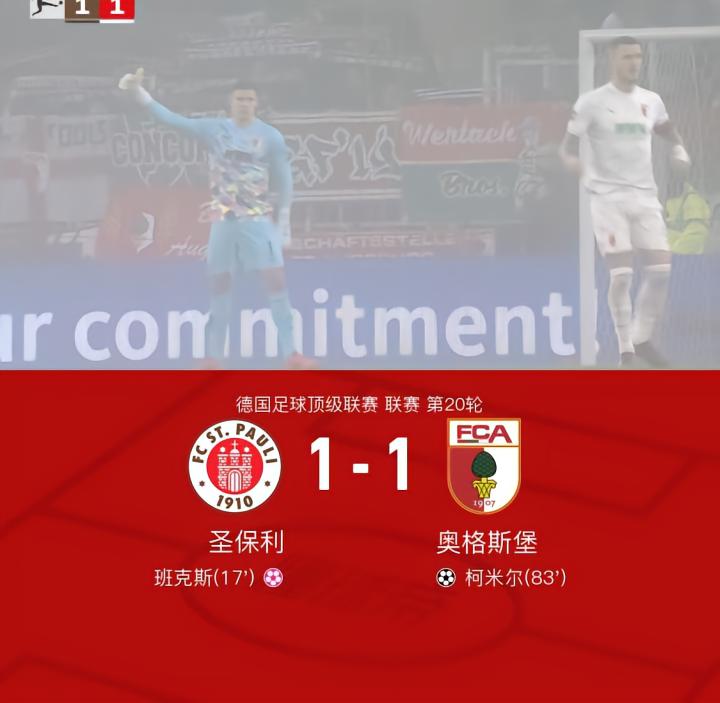 圣保利1比1奥格斯堡,班克斯打入乌龙,柯米尔扳平