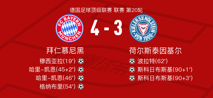 北京时间2月1日拜仁慕尼黑vs荷尔斯泰因基尔,哈里-凯恩得到全场最高的8.7分,阿兹努得到全场最低的6.0分