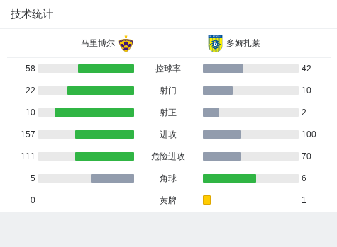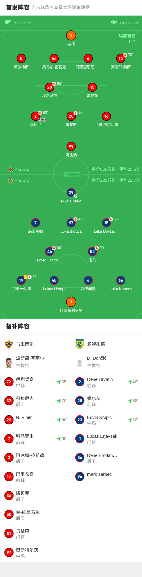 在斯洛文尼亚甲级联赛第19轮的较量中,马里博尔坐镇主场迎战多姆扎莱。比赛中,马里博尔的索达尼表现出色,成功两次攻破对方球门,为球队奠定了胜局。多姆扎莱方面,Nikola Buric通过点球机会扳回一城。最终,马里博尔以2-1的比分战胜多姆扎莱,取得了本场比赛的胜利。