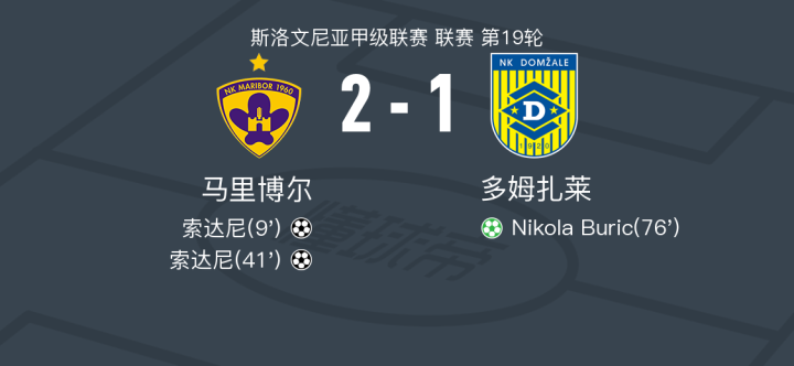 马里博尔2-1多姆扎莱,索达尼包办2球
