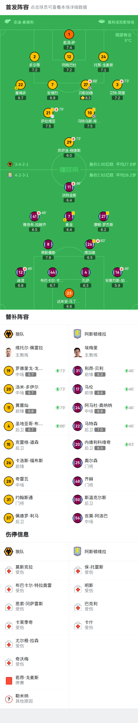 狼队2-0阿斯顿维拉,贝勒加德建功,库尼亚锁定比分
