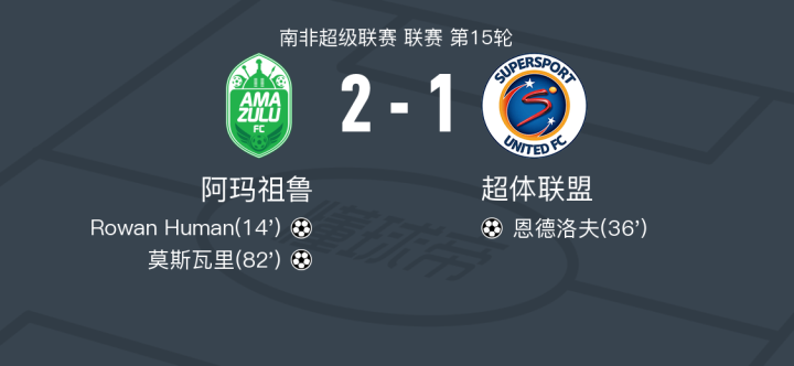 第82分钟,阿玛祖鲁球员Rowan Human助攻莫斯瓦里打入一球。