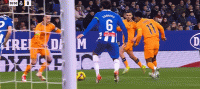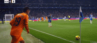 第45分钟,罗德里戈任意球攻门,皮球被挡出底线