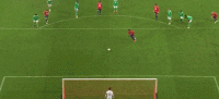 第28分钟,有点不可思议,穆顿门前无人防守直接打飞