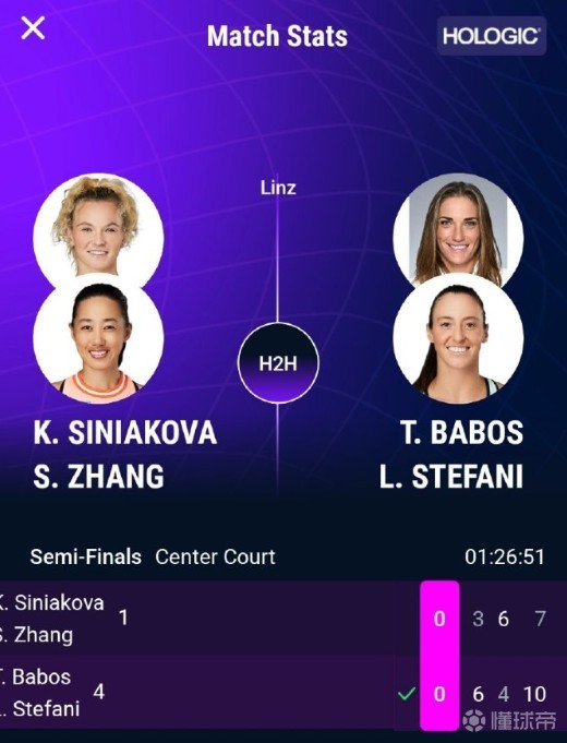 WTA500林茨站双打半决赛:张帅/西尼亚科娃1-2憾负无缘决赛十月孤城chasing @懂球帝2025-02-02 10:23北京时间2月2日,WTA500林茨站双打半决赛结束了争夺。赛会头号种子张帅/西尼亚科娃1-2(3-6、6-4、7-10)不敌4号种子巴博斯/史蒂芬妮,止步四强无缘新赛季第一个双打决赛。本场比赛张帅/西尼亚科娃在抢10一度5-2领先,但随后因失误增多被对手完成逆转。展开更多