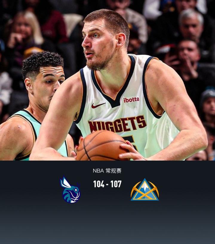 威斯布鲁克缺阵,掘金107-104险胜黄蜂,约基奇28+13+17