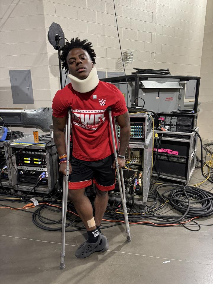 美国WWE(世界摔角娱乐)是带有表演性质的体育综合竞技项目,但仍对选手的身体素质和运动能力有较高要求,据赛后Speed个人社媒晒出的照片,他的颈部、腿部均有受伤。