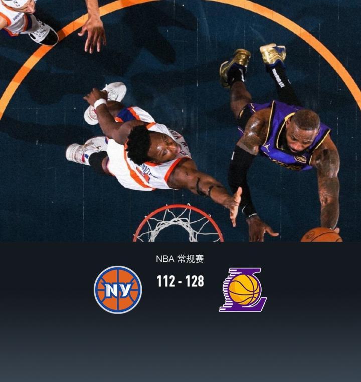 第四节,开节湖人连续反击迅速取得两位数领先,随后尼克斯展开反扑,湖人詹姆斯站出来连续得分再度拉至两位数分差,尼克斯无力反扑,比赛失去悬念,最后2分钟双方撤下主力,湖人布朗尼登场冲框拿到2分,最终尼克斯112-128不敌湖人。
