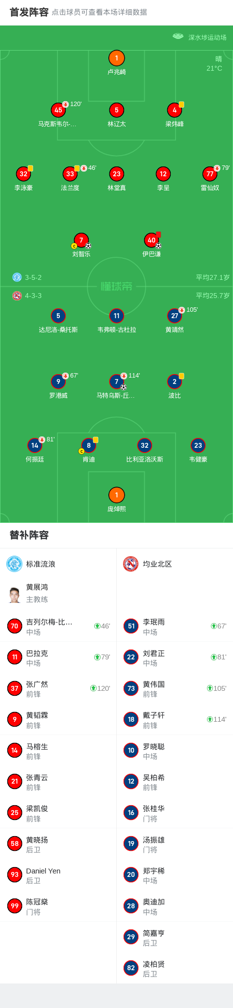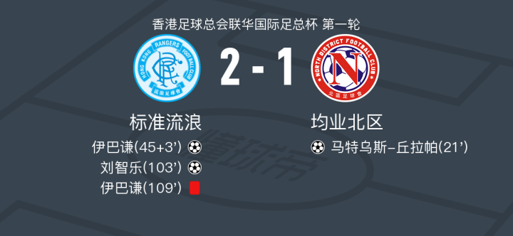 在香港足球总会联华国际足总杯第一轮的较量中,标准流浪迎战均业北区。比赛中,均业北区的马特乌斯-丘拉帕率先为球队取得进球。随后,标准流浪的伊巴谦扳平比分。比赛进入加时阶段,刘智乐为标准流浪再下一城,帮助球队反超比分。然而,伊巴谦在比赛中被罚下,给标准流浪带来了一些压力。最终,标准流浪以2-1战胜均业北区,成功晋级下一轮。