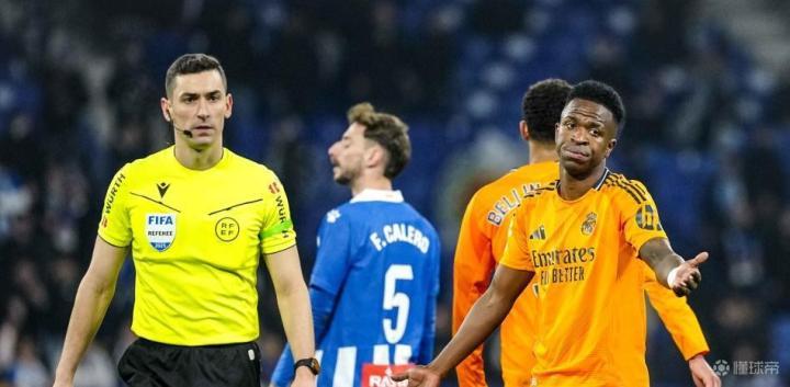 在西班牙人对阵皇家马德里的比赛中,维尼修斯在第21分钟为皇家马德里破门得分,但裁判穆尼兹-鲁伊斯取消了这个进球。