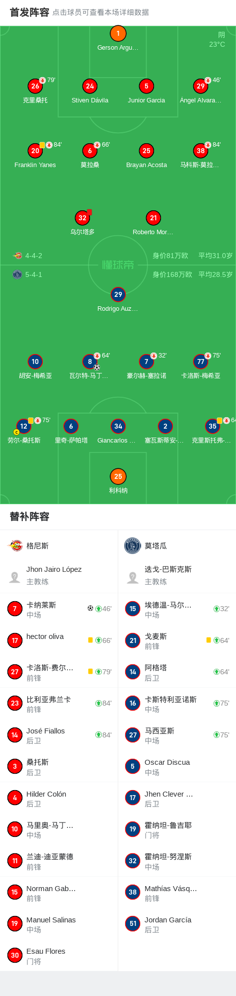 格尼斯1-1莫塔瓜,瓦尔特-马丁内斯破门,卡纳莱斯扳平比分