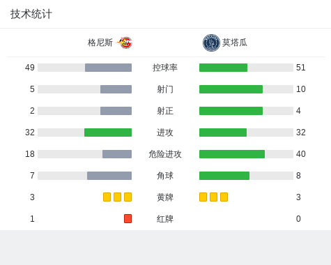 第51分钟,格尼斯球队乌尔塔多吃到红牌。