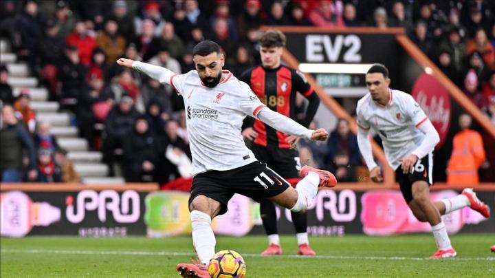 在上周末进行的英超第24轮比赛中,利物浦客场2-0击败伯恩茅斯,其中萨拉赫在第30分钟主罚点球命中,帮助球队取得领先。