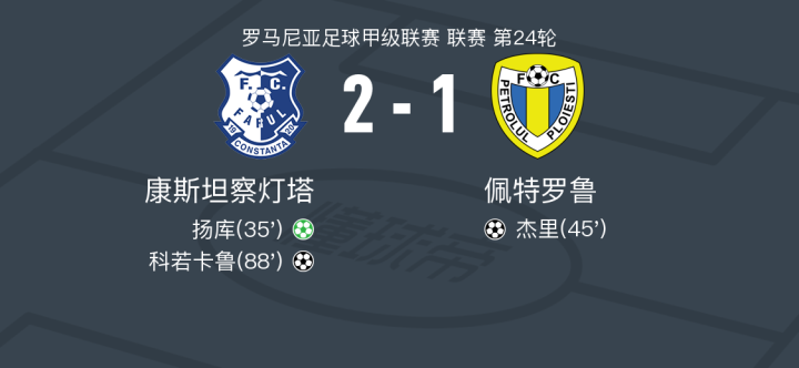 康斯坦察灯塔2-1佩特罗鲁,科若卡鲁破门,扬库点射