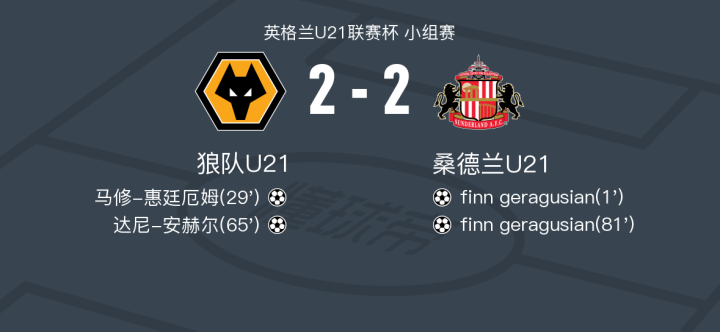 狼队U21 2-2桑德兰U21,finn geragusian首开记录,finn geragusian救主