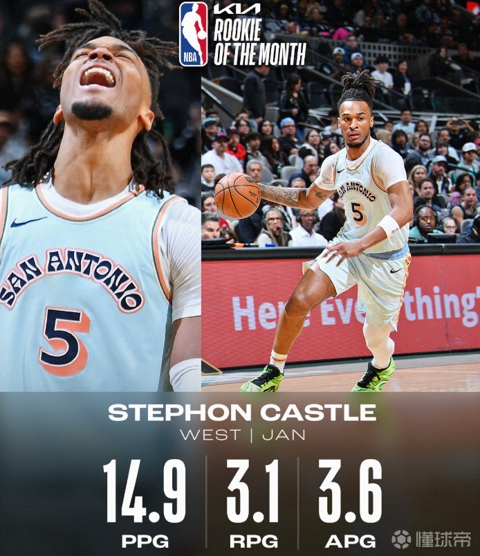 NBA官方:凯尔-韦尔和斯蒂芬-卡斯尔分别当选1月东西部最佳新秀
