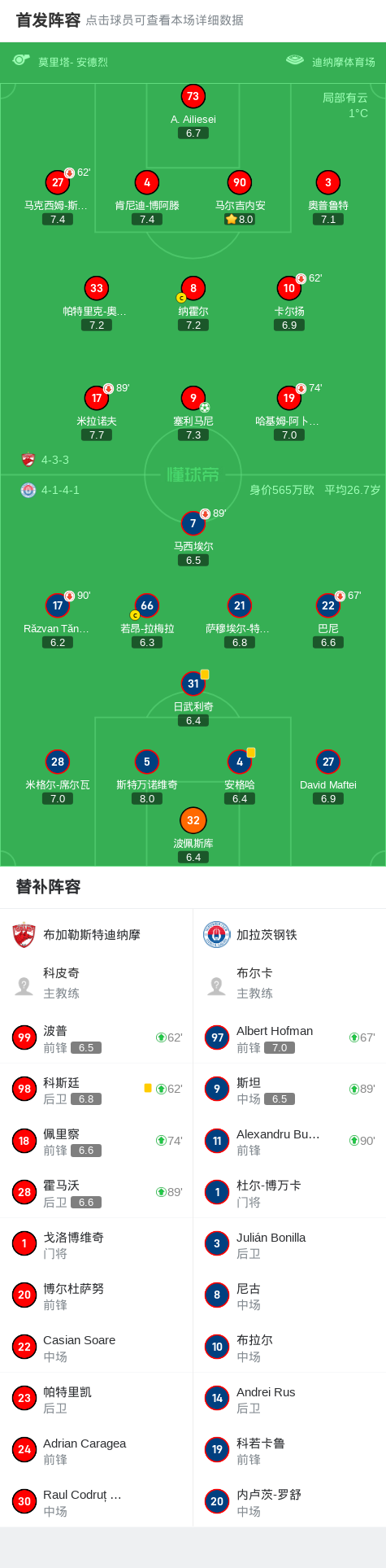 在罗马尼亚足球甲级联赛第25轮的较量中,布加勒斯特迪纳摩坐镇主场迎战加拉茨钢铁。比赛中,布加勒斯特迪纳摩的塞利马尼成功罚入点球,为球队打破僵局。最终,布加勒斯特迪纳摩以1-0小胜加拉茨钢铁,取得了本场比赛的胜利。