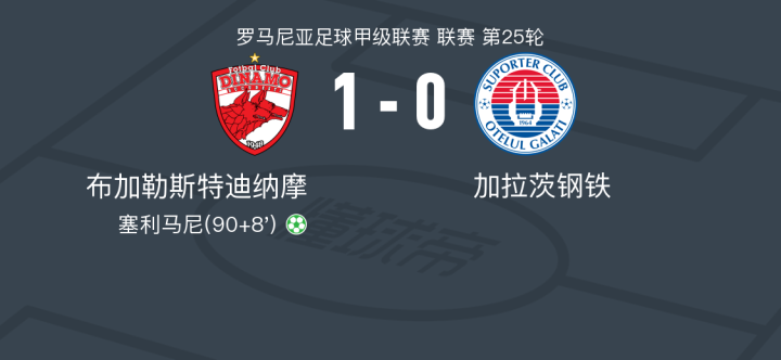 布加勒斯特迪纳摩1-0加拉茨钢铁,塞利马尼点射制胜