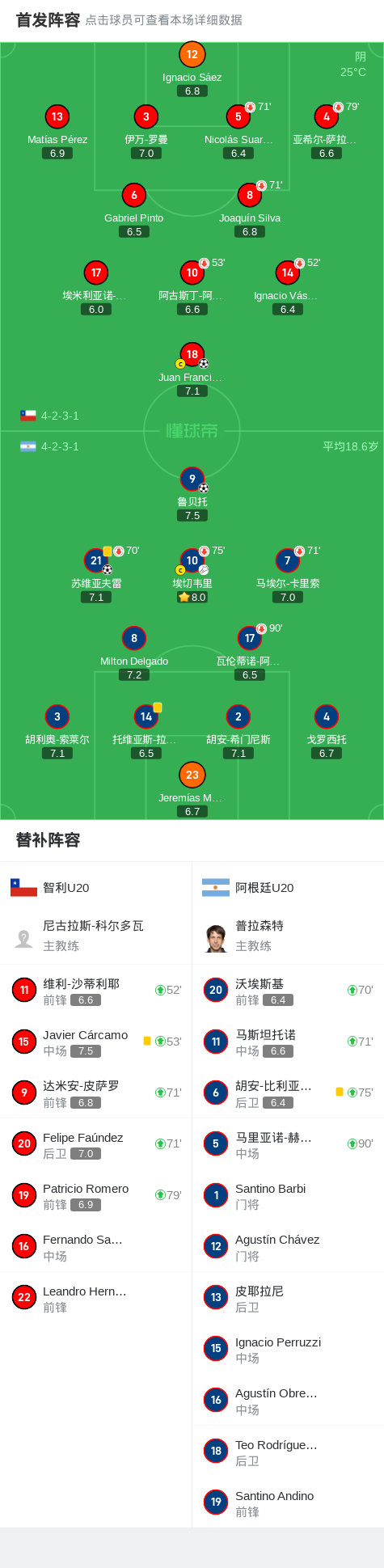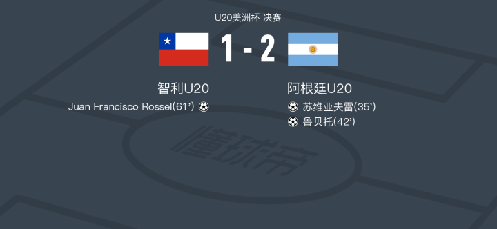 阿根廷U20 2-1智利U20,鲁贝托建功,苏维亚夫雷破门