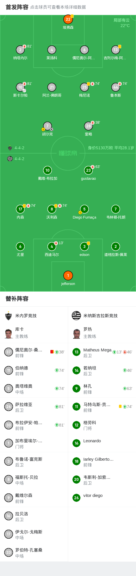 下半场补时第6分钟,米内罗竞技球队儒尼奥尔-桑托斯吃到第二张黄牌。