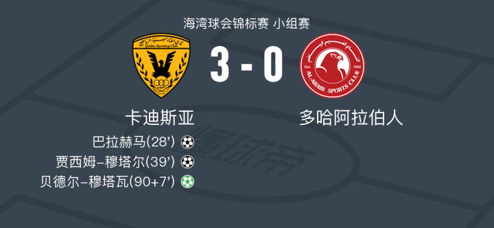 卡迪斯亚3-0大胜多哈阿拉伯人,贝德尔-穆塔瓦点射,贾西姆-穆塔尔建功