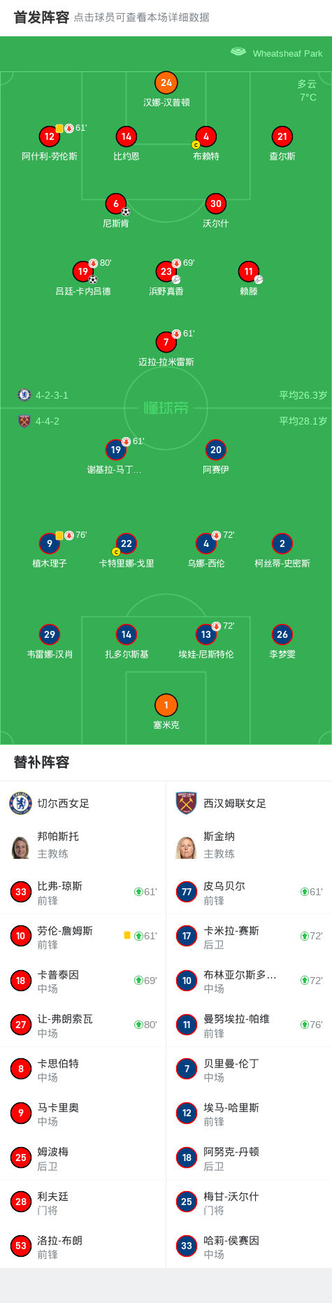 第20分钟,切尔西女足球员浜野真香助攻吕廷-卡内吕德打入一球。