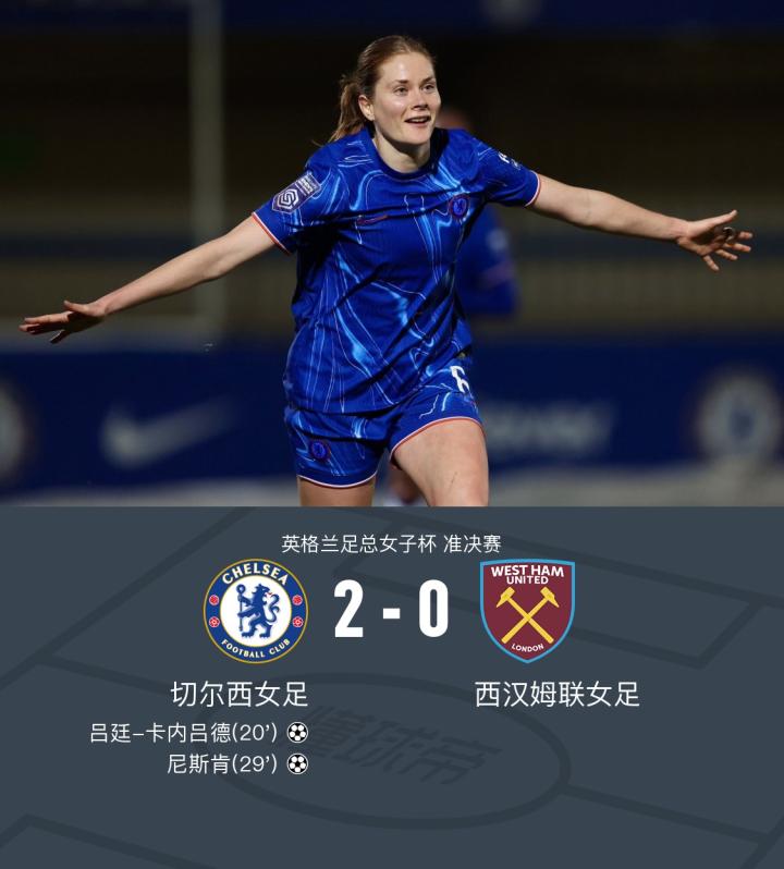 在英格兰足总女子杯准决赛中,切尔西女足迎战西汉姆联女足。比赛中,切尔西女足展现了出色的进攻实力。首先,浜野真香送出精妙助攻,吕廷-卡内吕德成功破门,为球队首开纪录。随后,赖滕再次送出助攻,尼斯肯抓住机会,将比分扩大。最终,切尔西女足以2-0战胜西汉姆联女足,顺利晋级。