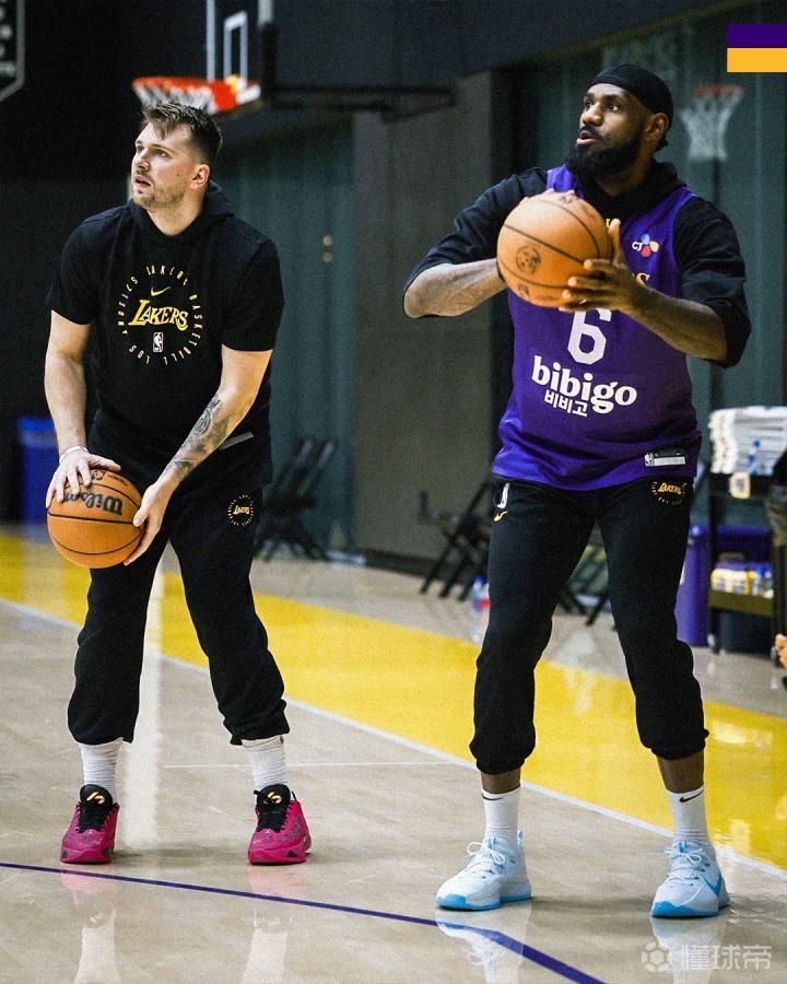 首度同框,湖人官方晒东契奇和詹姆斯的训练合影