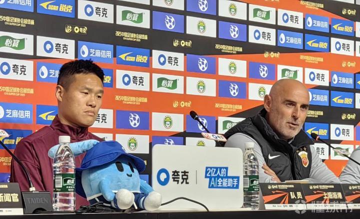 北京时间2月6日,中国超级杯上海海港vs上海申花的赛前新闻发布会在昆山奥体中心召开。上海海港主教练穆斯卡特携球员李昂出席。