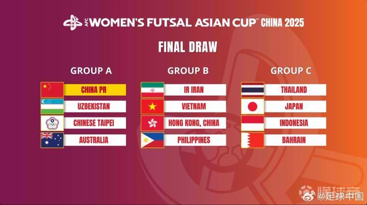 2025五人制女足亚洲杯抽签结果出炉:中国与中国台北同组