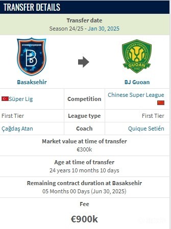 德转显示,吴少聪加盟北京国安的转会费为90万欧元,约合人民币680万元。
