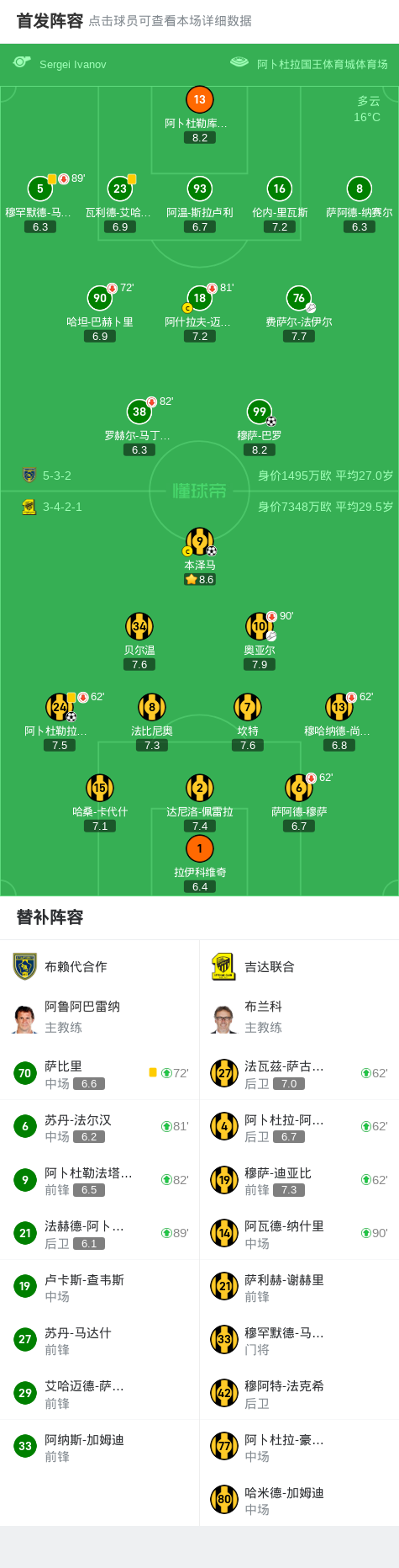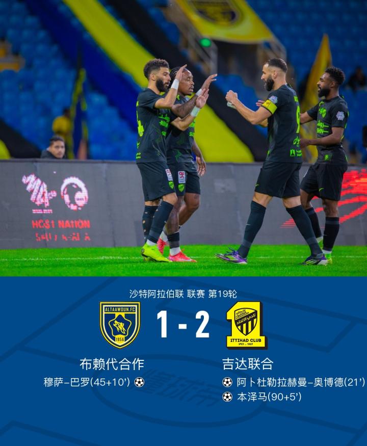 吉达联合2-1客胜布赖代合作,奥博德建功,本泽马绝杀