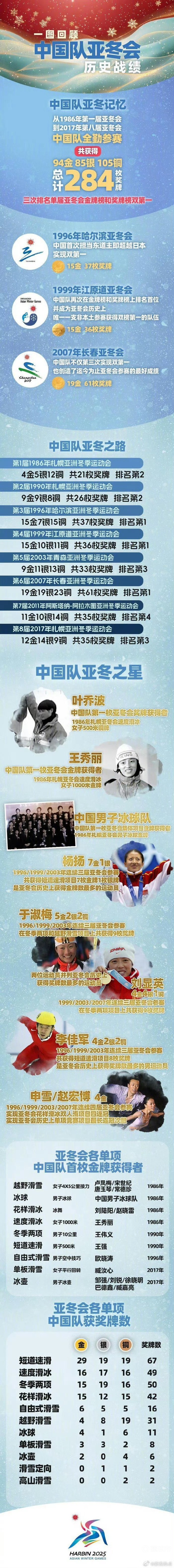 亚冬会中国体育代表团历史战绩