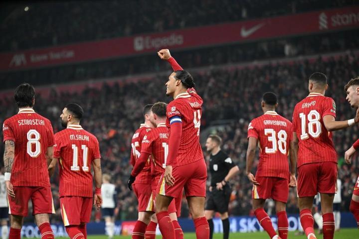 英格兰联赛杯半决赛次回合的一场较量中,利物浦主场4-0大胜托特纳姆热刺,总比分4-1晋级决赛。