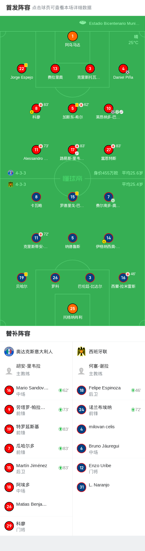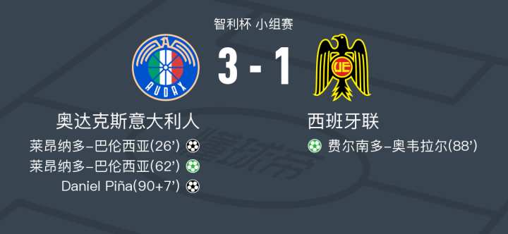 奥达克斯意大利人3-1西班牙联,莱昂纳多-巴伦西亚两球,Daniel Piña建功