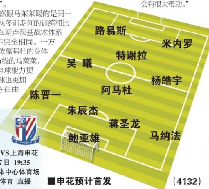 《东方体育日报》预测申花队首发(4-1-3-2):鲍亚雄、马纳法、蒋圣龙、朱辰杰、陈晋一、阿马杜、杨皓宇、吴曦、特谢拉、米内罗、路易斯。